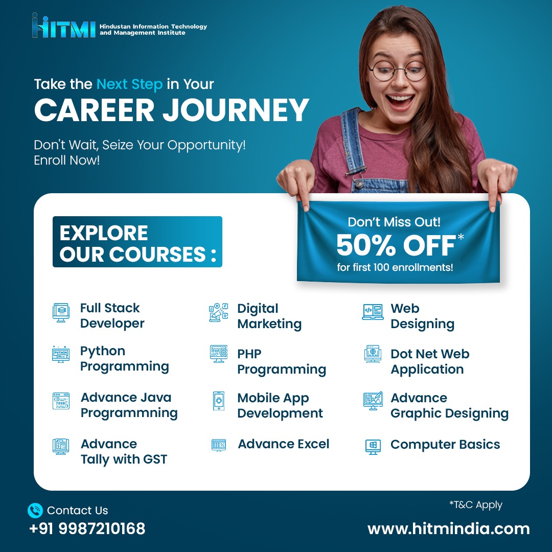 HITMI is a renowned institute offering job-oriented training in IT courses, competitive exams. With experienced faculty and 100% job assurance, we aim to enhance students’ skills and uplift their careers.